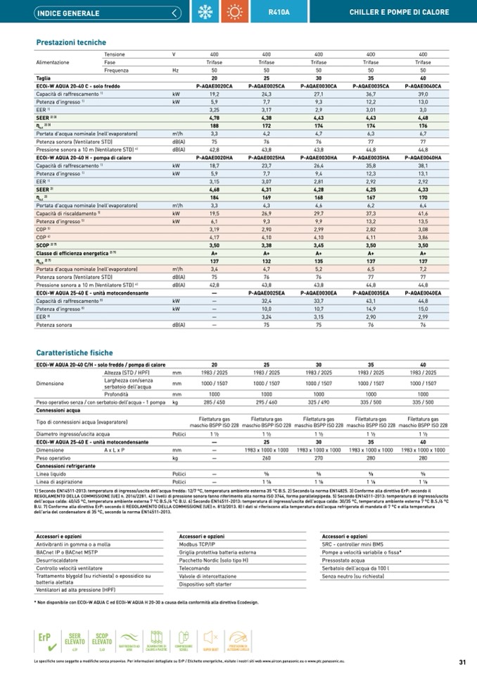fredda: 12/7 °C, temperatura ambiente esterna 35 °C B.S. 2) Secondo la norma EN14825. 3) Conforme alla direttiva ErP: secondo il