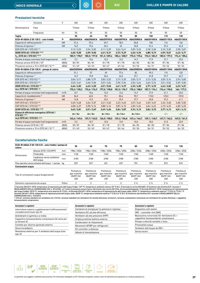 1) Secondo EN14511-2018: temperatura di ingresso/uscita dell'acqua fredda: 12/7 °C, temperatura ambiente esterna 35 °C B.S. 2) Secondo la norma EN14825. 3) Conforme alla direttiva ErP: secondo il