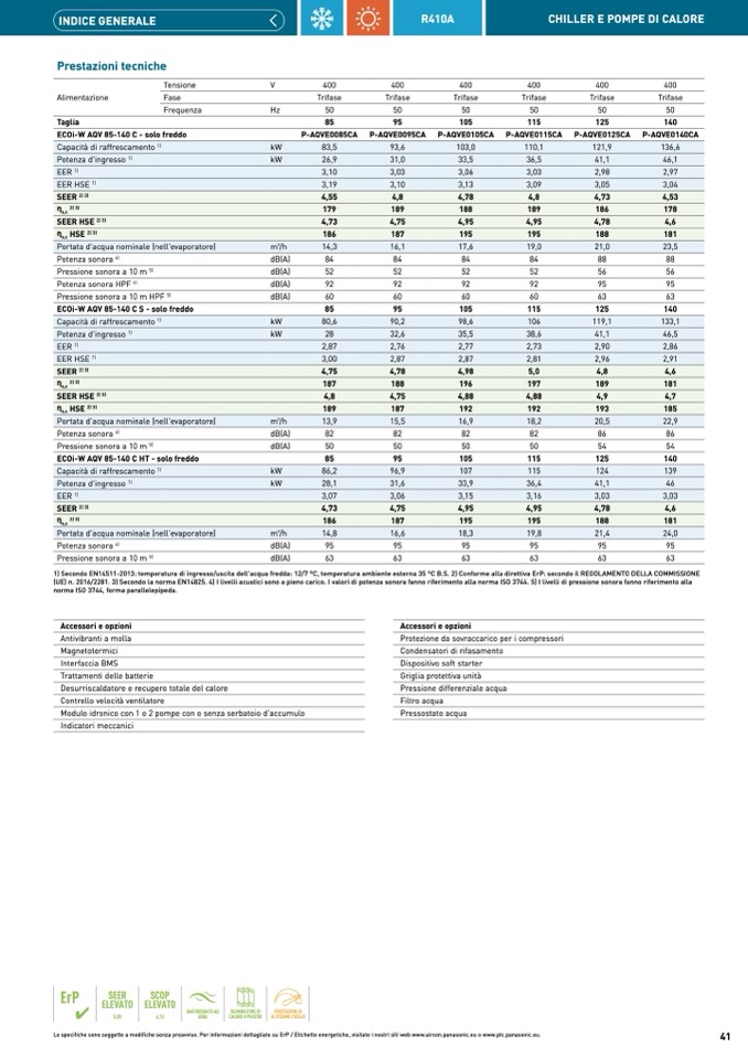 1) Secondo EN14511-2013: temperatura di ingresso/uscita dell'acqua fredda: 12/7 °C, temperatura ambiente esterna 35 °C B.S. 2) Conforme alla direttiva ErP: secondo il REGOLAMENTO DELLA COMMISSIONE