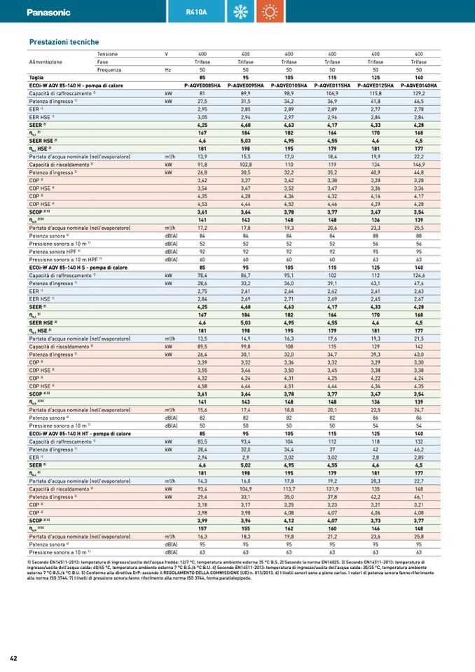 esterna 7 °C B.S./6 °C B.U. 5) Conforme alla direttiva ErP: secondo il REGOLAMENTO DELLA COMMISSIONE (UE) n. 813/2013. 6) I livelli sonori sono a pieno carico. I valori di potenza sonora fanno riferimento