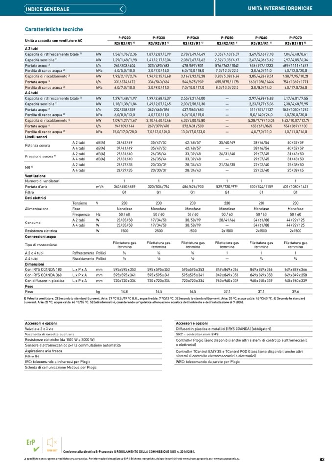 Le specifiche sono soggette a modifiche senza preavviso. Per informazioni dettagliate su ErP / Etichette energetiche, visitate i nostri siti web www.aircon.panasonic.eu o www.ptc.panasonic.eu.