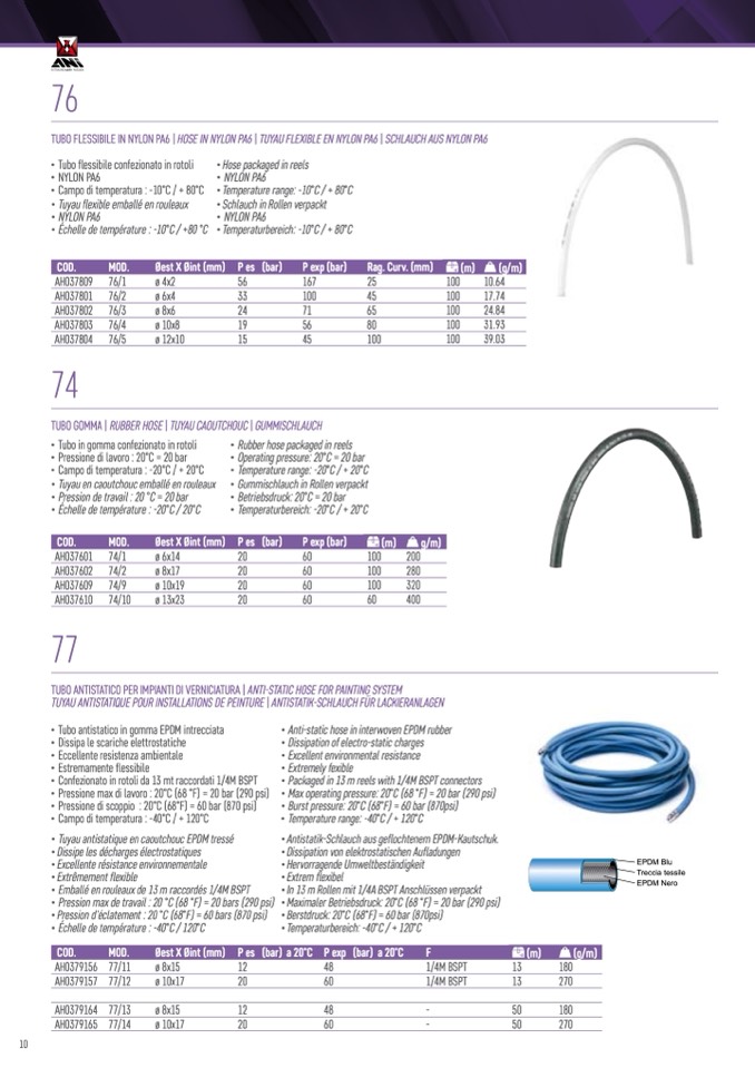 TUBO ANTISTATICO PER IMPIANTI DI VERNICIATURA | ANTI-STATIC HOSE FOR PAINTING SYSTEM