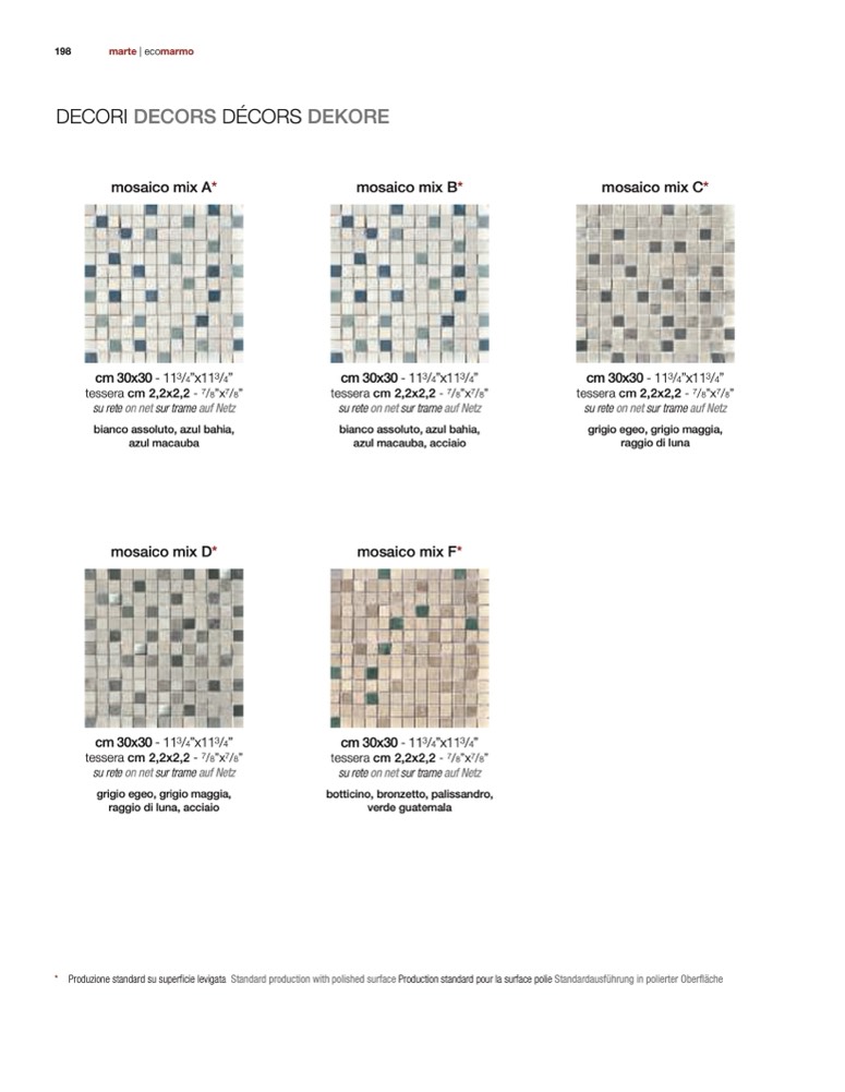* Produzione standard su superficie levigata Standard production with polished surface Production standard pour la surface polie Standardausführung in polierter Oberfl