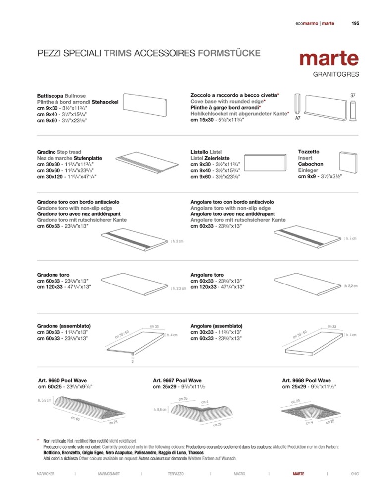 Botticino, Bronzetto, Grigio Egeo, Nero Acapulco, Palissandro, Raggio di Luna, Thassos