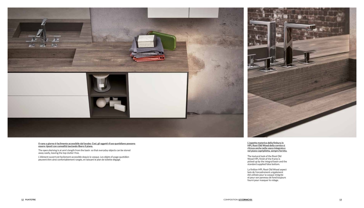Il vano a giorno è facilmente accessibile dal lavabo. Così, gli oggetti d’uso quotidiano possono
