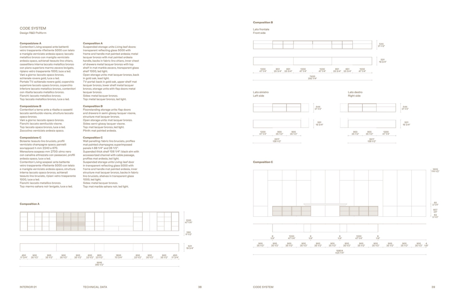 Open storage units: mat lacquer bronzo.