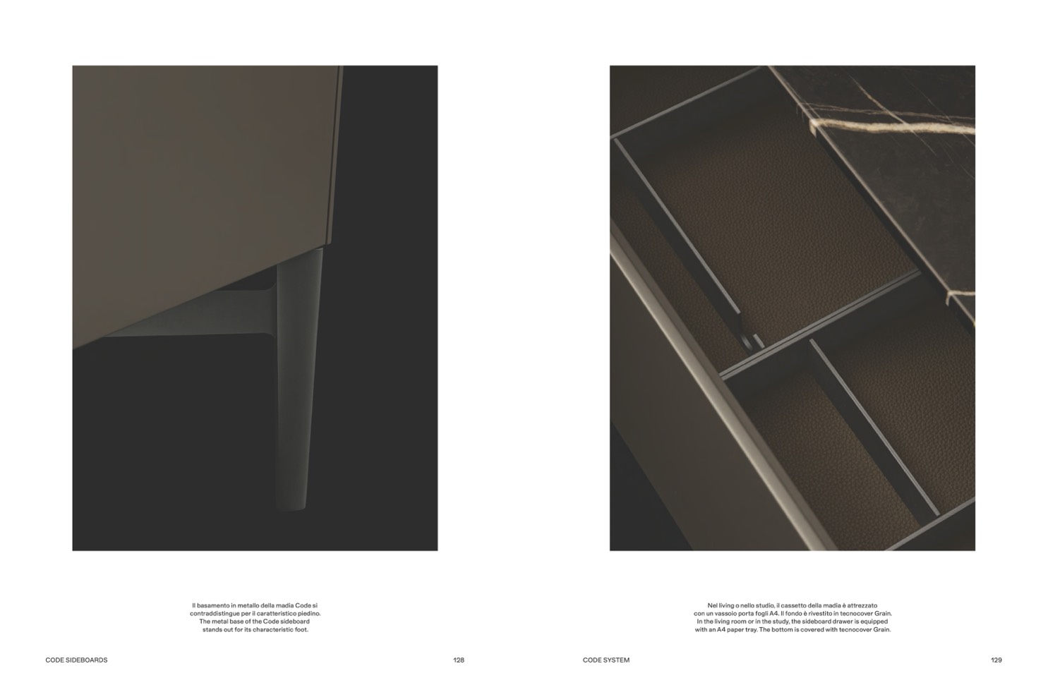 with an A4 paper tray. The bottom is covered with tecnocover Grain.