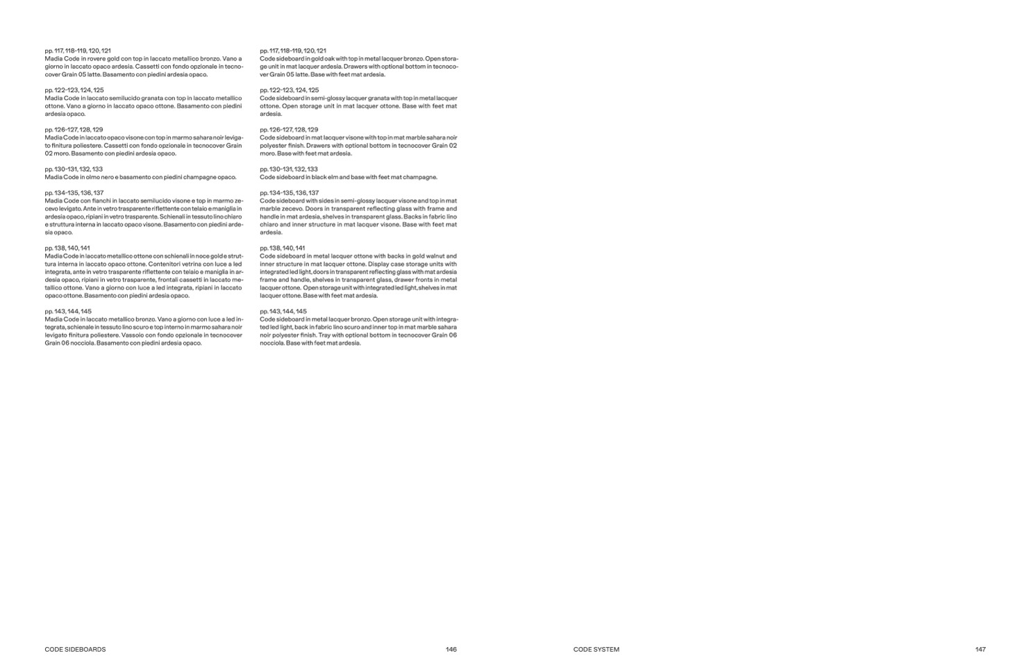 Code sideboard with sides in semi-glossy lacquer visone and top in mat