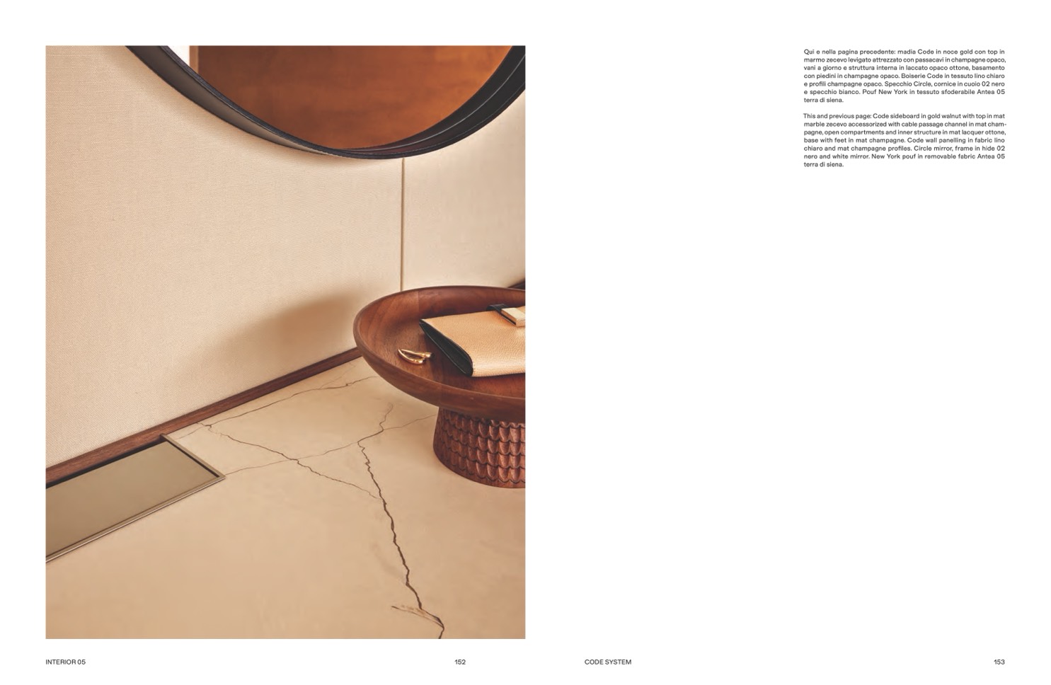 This and previous page: Code sideboard in gold walnut with top in mat