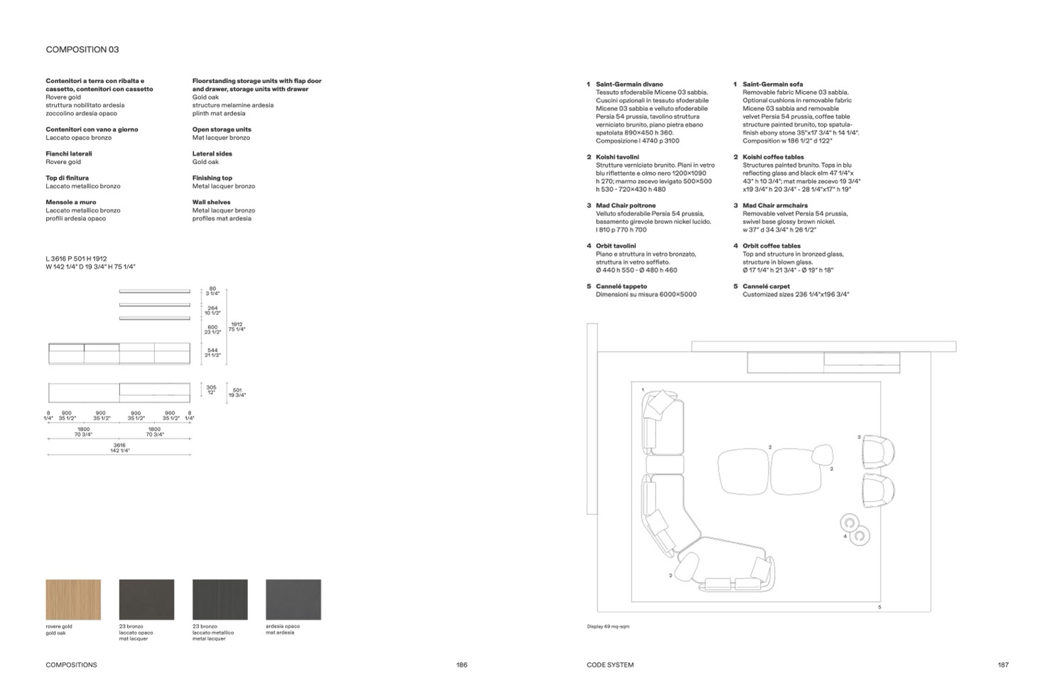 W 142 1/4” D 19 3/4” H 75 1/4”
