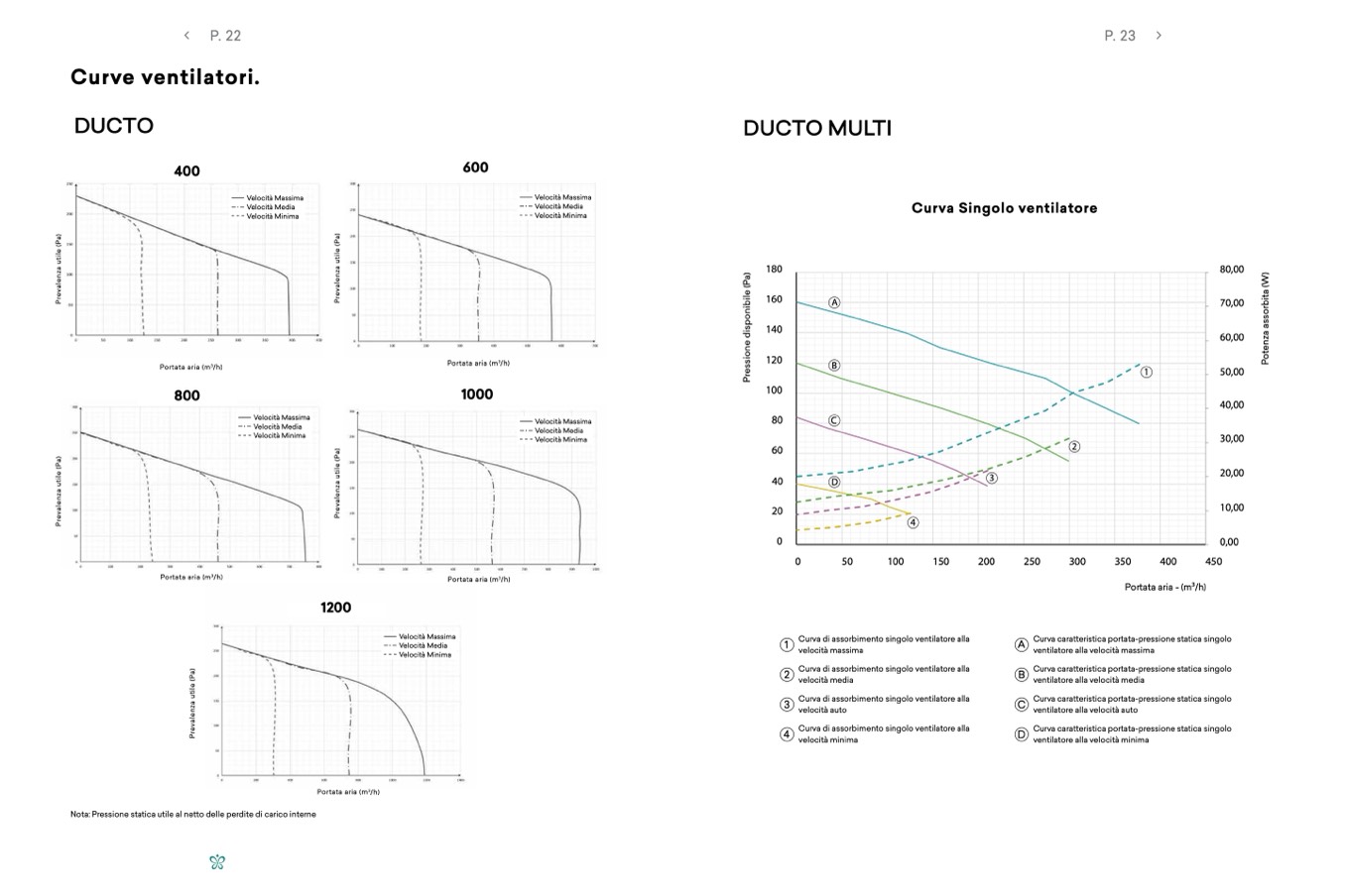 Curva caratteristica portata-pressione statica singolo