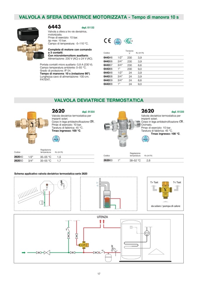 Schema applicativo valvola deviatrice termostatica serie 2620