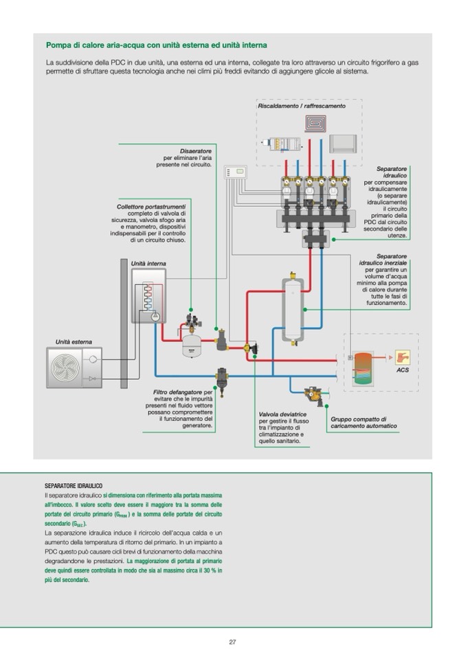 La suddivisione della PDC in due unità, una esterna ed una interna, collegate tra loro attraverso un circuito frigorifero a gas