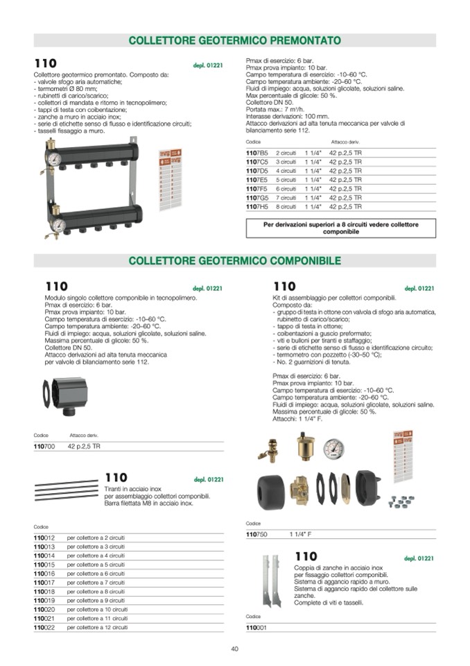 Per derivazioni superiori a 8 circuiti vedere collettore