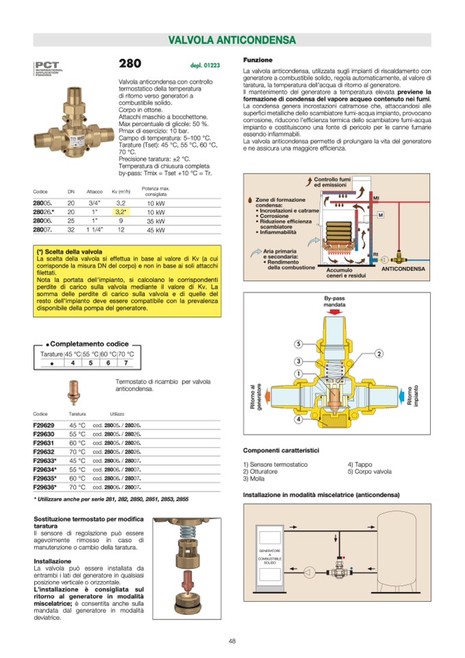 La valvola anticondensa, utilizzata sugli impianti di riscaldamento con