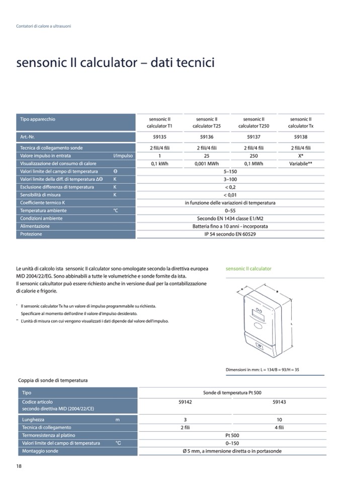 MID 2004/22/EG. Sono abbinabili a tutte le volumetriche e sonde fornite da ista.