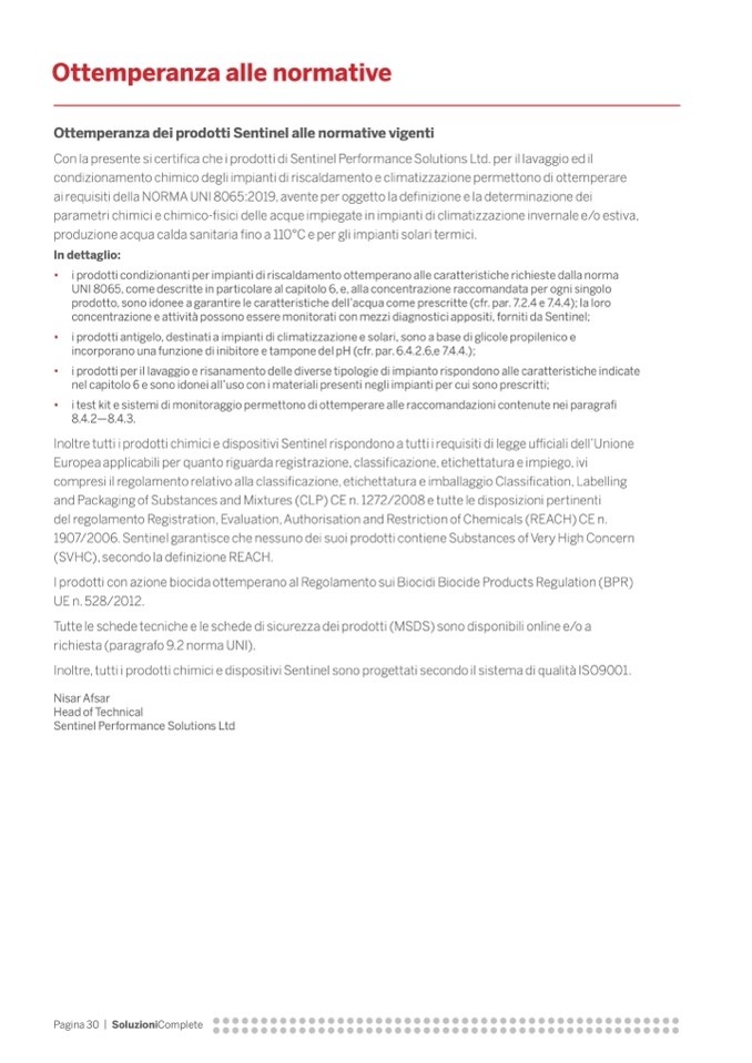 Inoltre tutti i prodotti chimici e dispositivi Sentinel rispondono a tutti i requisiti di legge u