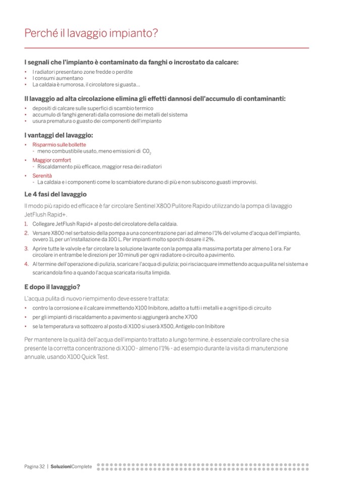 • contro la corrosione e il calcare immettendo X100 Inibitore, adatto a tutti i metalli e a ogni tipo di circuito