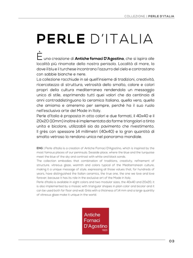 ENG | Perle d’Italia is a creation of Antiche Fornaci D’Agostino, which is inspired by the