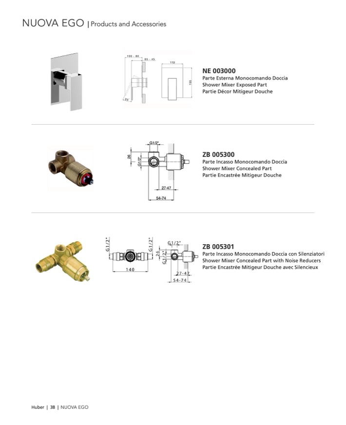 Parte Incasso Monocomando Doccia con Silenziatori