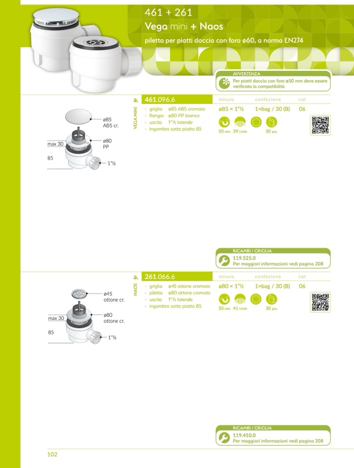 Per piatti doccia con foro ø50 mm deve esser