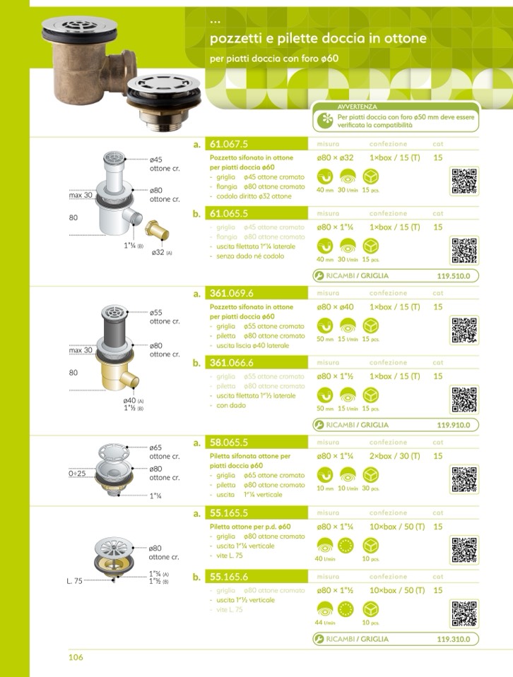 Pozzetto sifonato in otton
