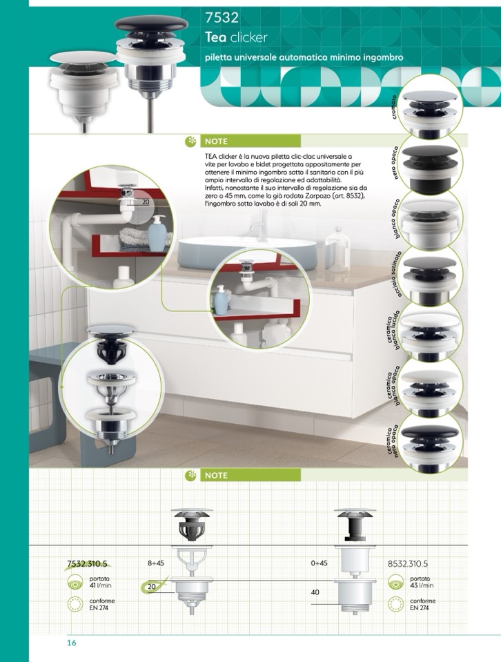 l'ingombro sotto lavabo è di soli 20 mm