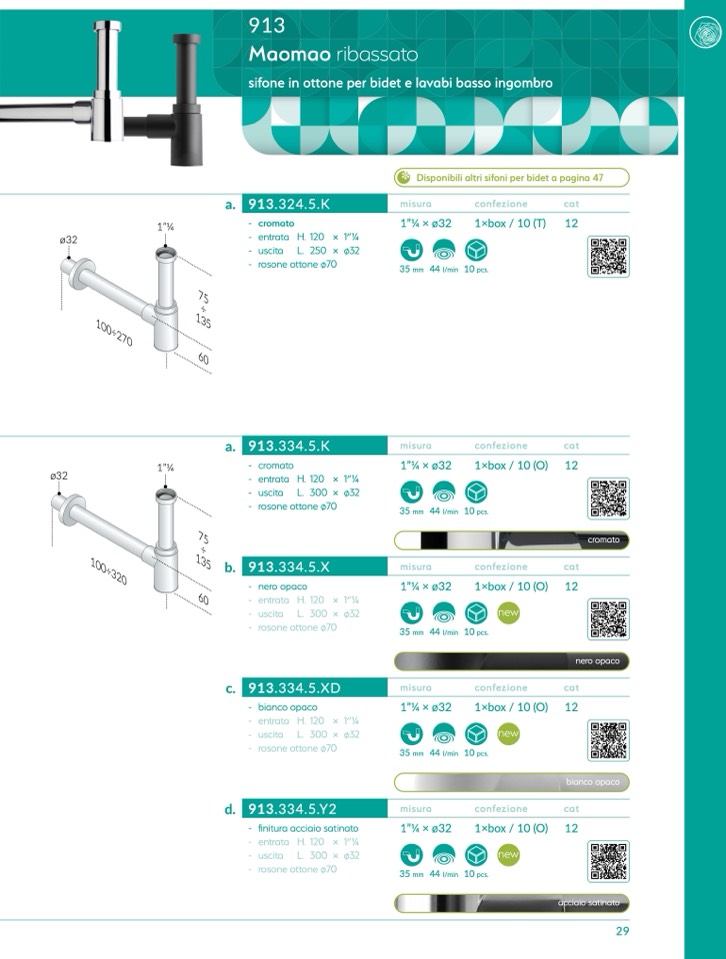 Disponibili altri sifoni per bidet a pagina 47