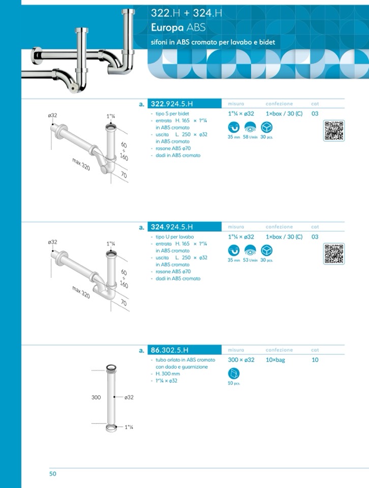- tipo U per lavabo