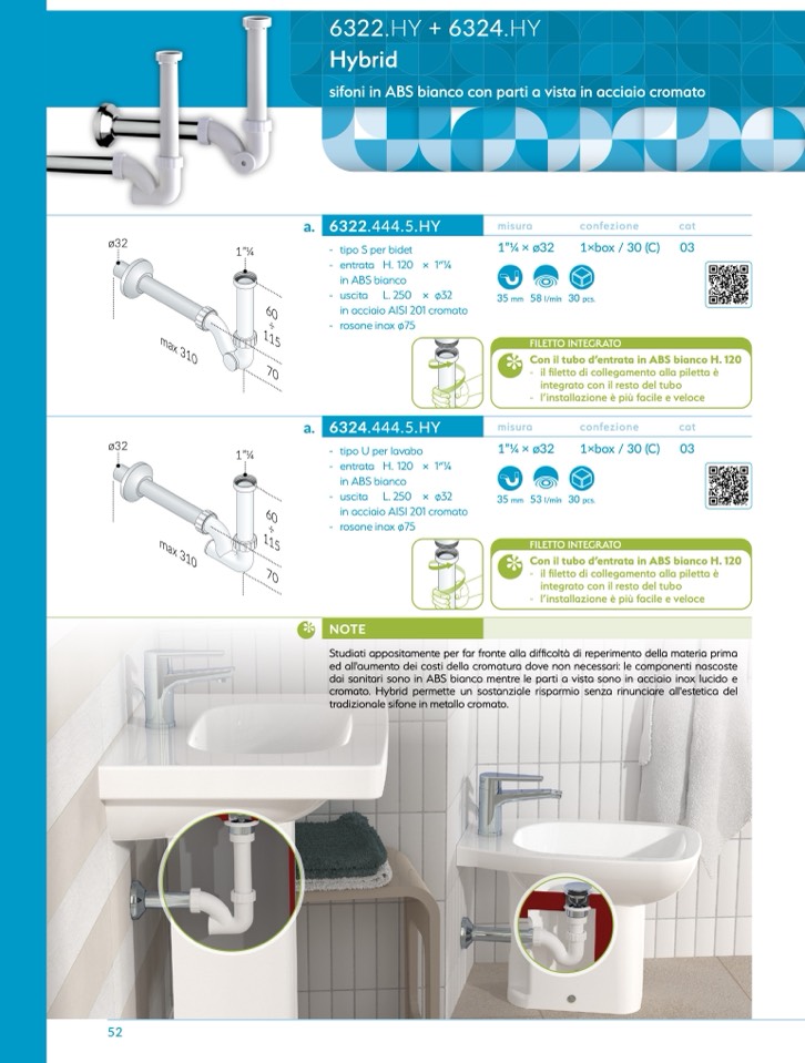 dai sanitari sono in ABS bianco mentre le parti a vista sono in acciaio inox lucido e