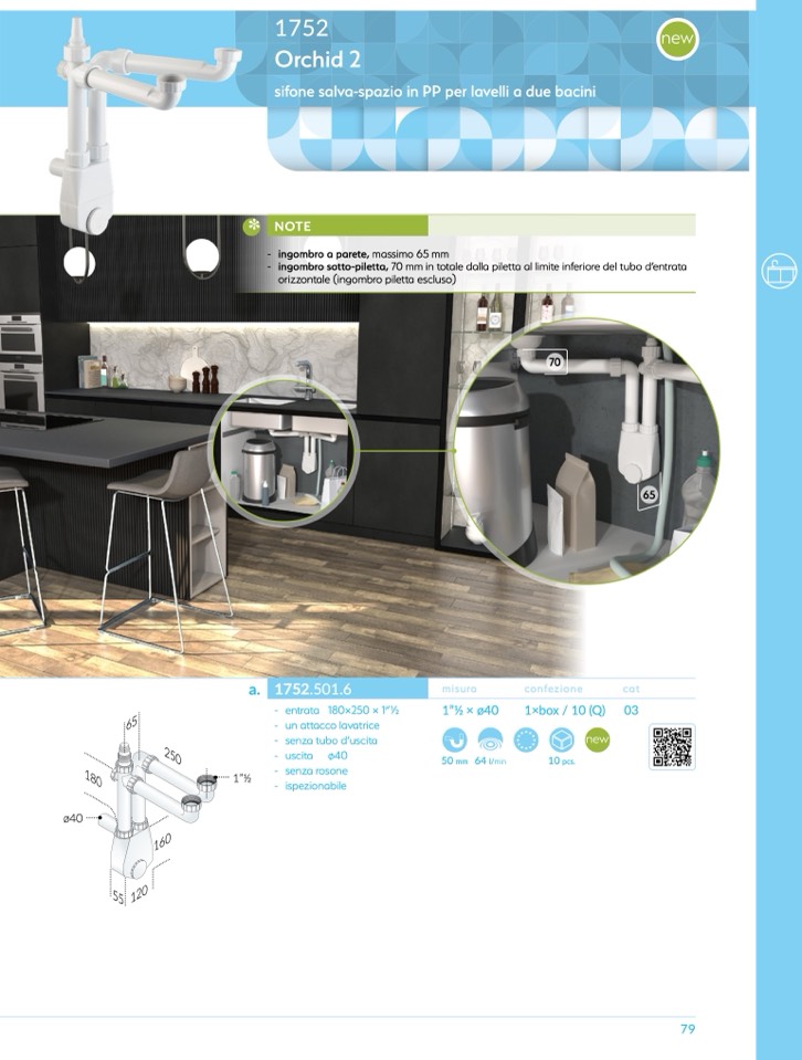 - ingombro sotto-piletta, 70 mm in totale dalla piletta al limite inferiore del tubo d’entrata