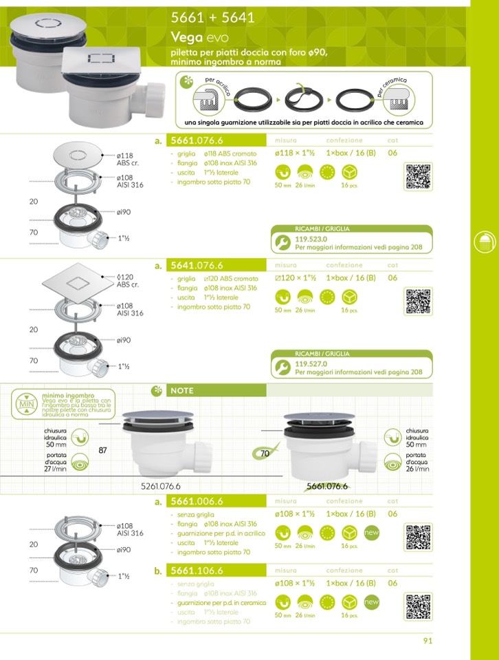 una singola guarnizione utilizzabile sia per piatti doccia in acrilico che ceramic