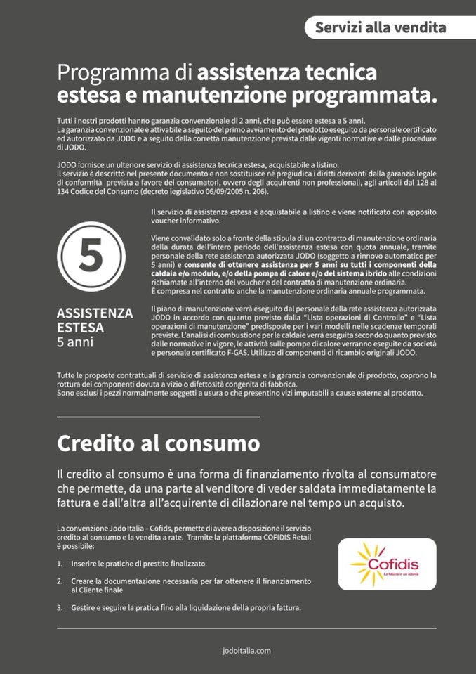 JODO fornisce un ulteriore servizio di assistenza tecnica estesa, acquistabile a listino.