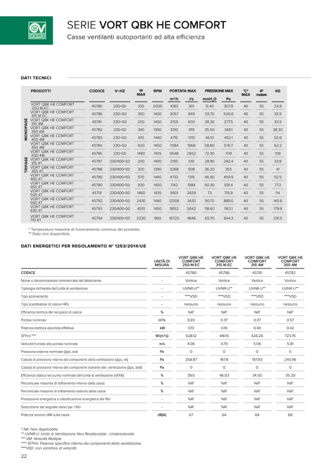DATI ENERGETICI PER REGOLAMENTO N° 1253/2014/UE