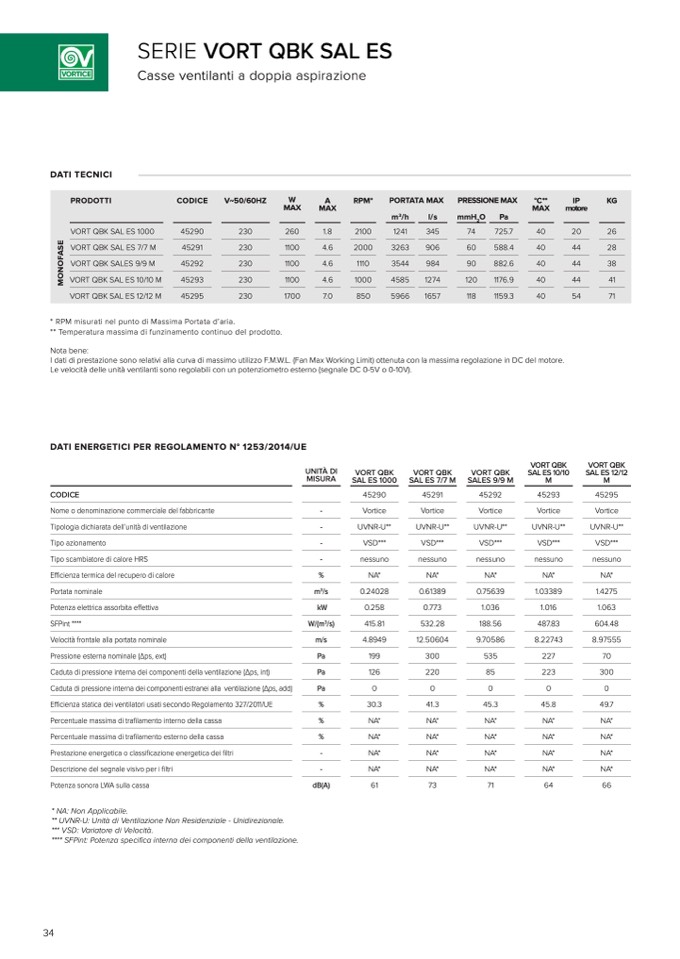 DATI ENERGETICI PER REGOLAMENTO N° 1253/2014/UE