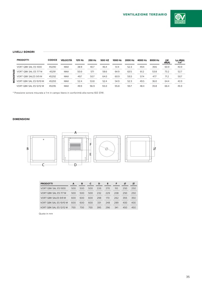 * Pressione sonora misurata a 1 m in campo libero in conforimtà alla norma ISO 3741.