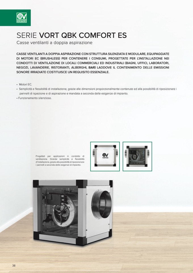 pannelli di ispezione e di aspirazione e mandata a seconda delle esigenze di impianto.