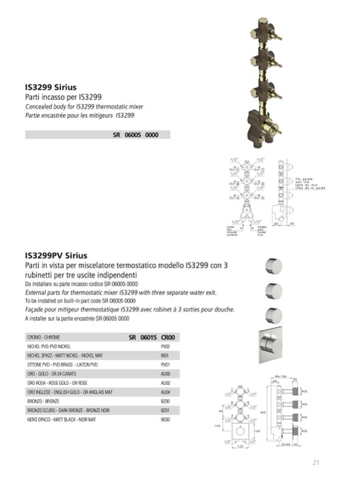 External parts for thermostatic mixer IS3299 with three separate water exit.