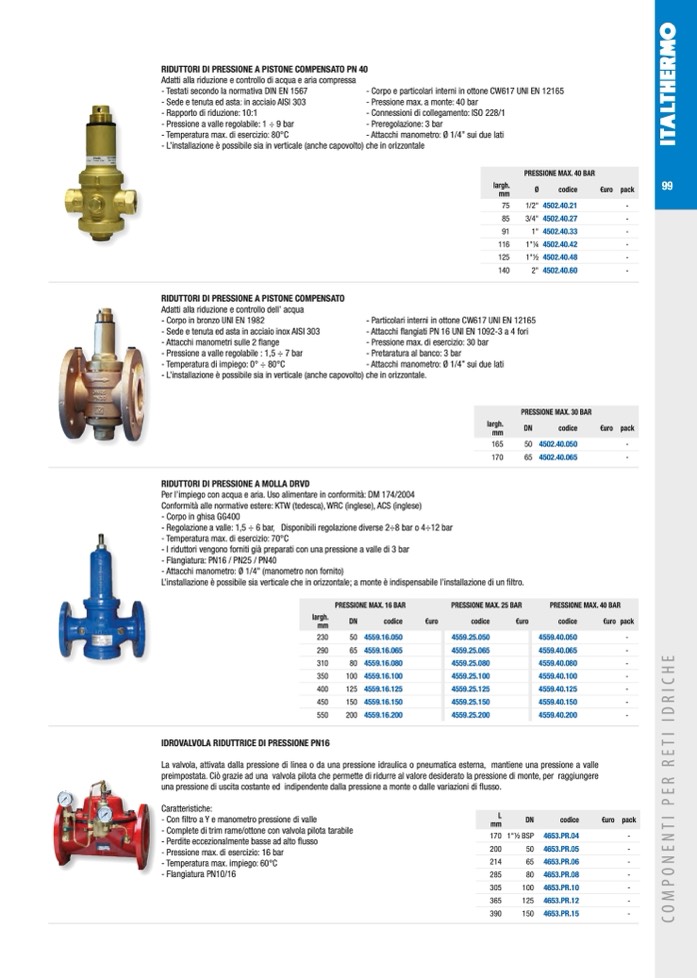 RIDUTTORI DI PRESSIONE A PISTONE COMPENSATO PN 40
