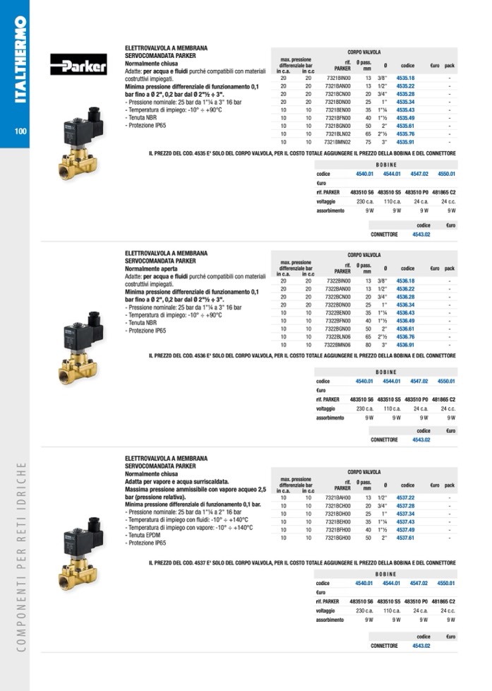IL PREZZO DEL COD. 4537 E' SOLO DEL CORPO VALVOLA, PER IL COSTO TOTALE AGGIUNGERE IL PREZZO DELLA BOBINA E DEL CONNETTORE