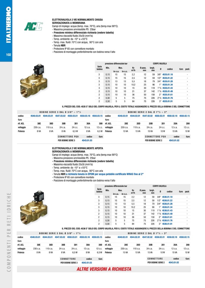 IL PREZZO DEL COD. 4535 E' SOLO DEL CORPO VALVOLA, PER IL COSTO TOTALE AGGIUNGERE IL PREZZO DELLA BOBINA E DEL CONNETTORE