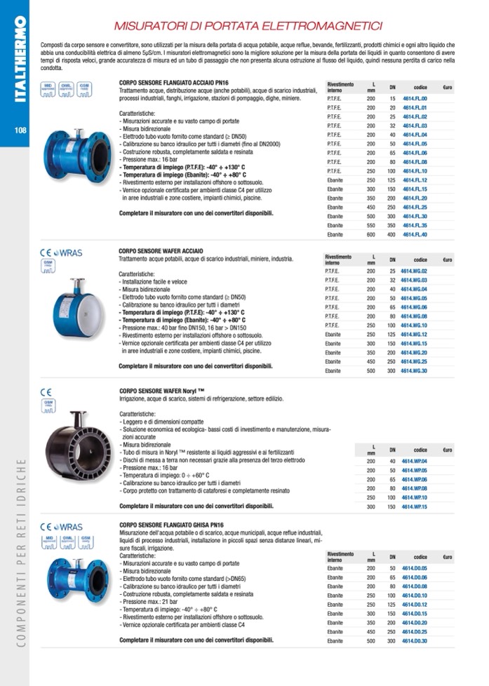 Composti da corpo sensore e convertitore, sono utilizzati per la misura della portata di acqua potabile, acque reflue, bevande, fertilizzanti, prodotti chimici e ogni altro liquido che