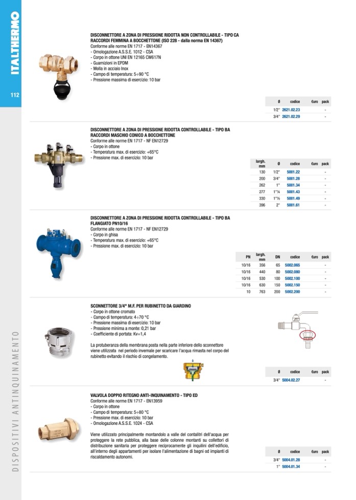 VALVOLA DOPPIO RITEGNO ANTI-INQUINAMENTO - TIPO ED