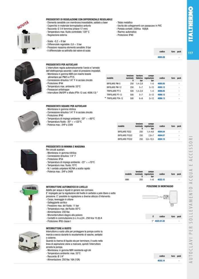 PRESSOSTATO DI MINIMA E MASSIMA