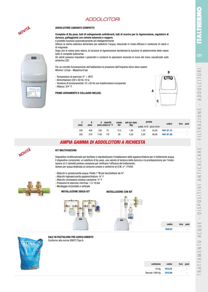 durezza, galleggiante con valvola salamoia e reggera.