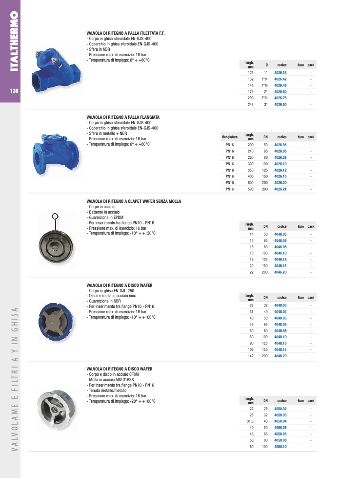 VALVOLA DI RITEGNO A PALLA FLANGIATA