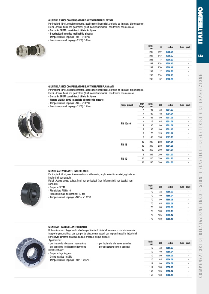 GIUNTI ELASTICI COMPENSATORI E ANTIVIBRANTI FILETTATI