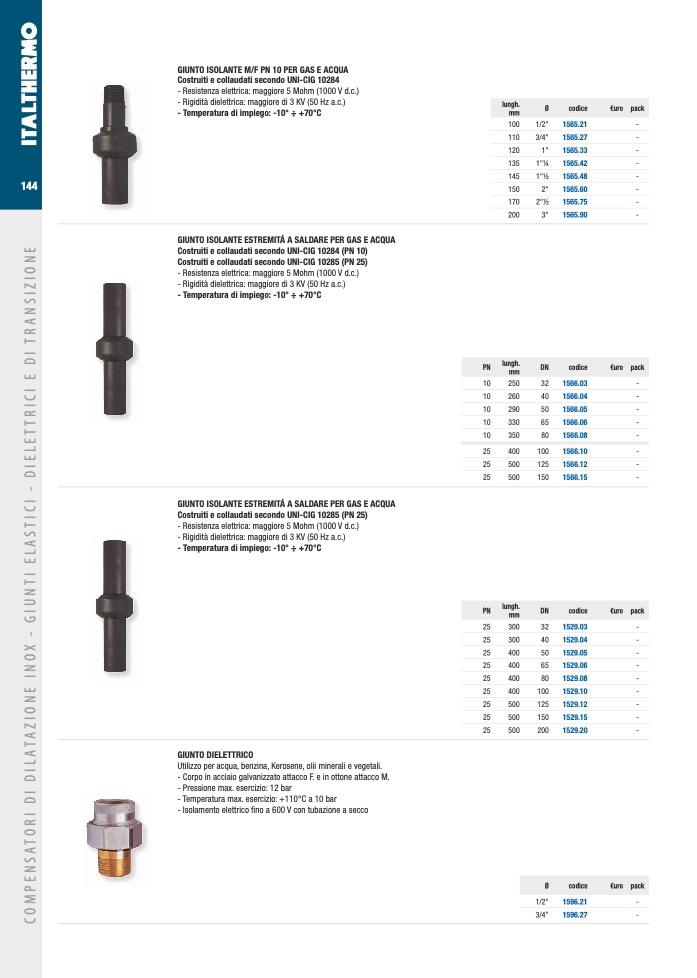 GIUNTO ISOLANTE ESTREMITÁ A SALDARE PER GAS E ACQUA