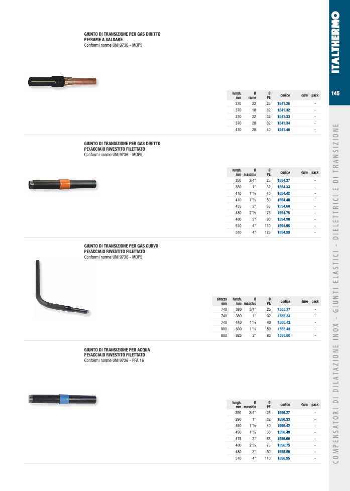 GIUNTO DI TRANSIZIONE PER GAS DIRITTO