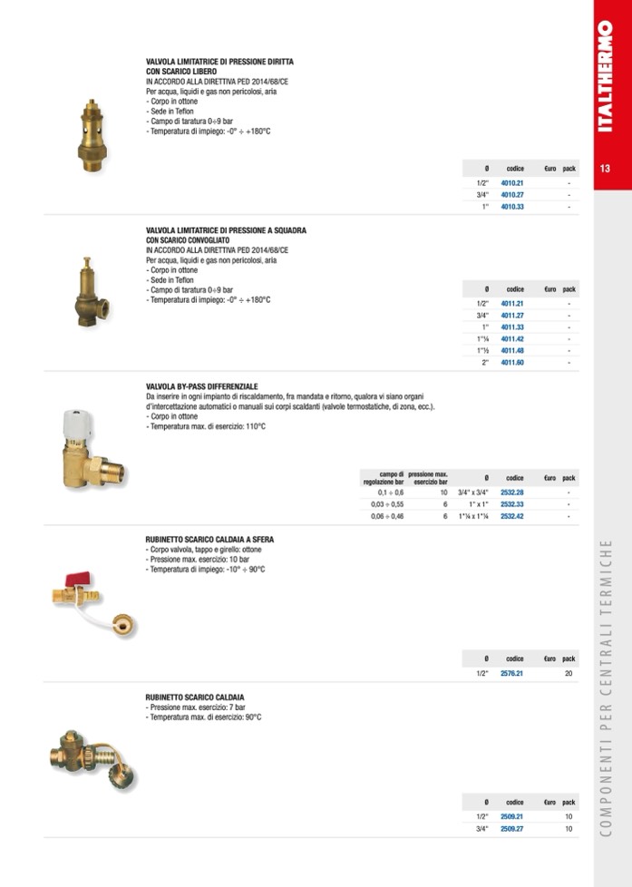 VALVOLA LIMITATRICE DI PRESSIONE DIRITTA